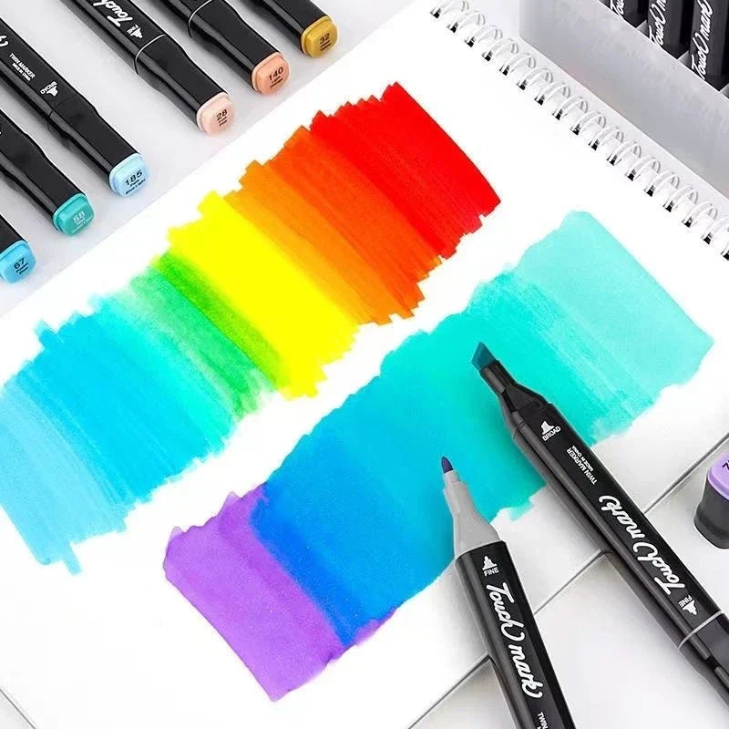 - Marcadores à Base de Álcool: Cores vibrantes e permanentes que garantem resultados profissionais sem manchas.